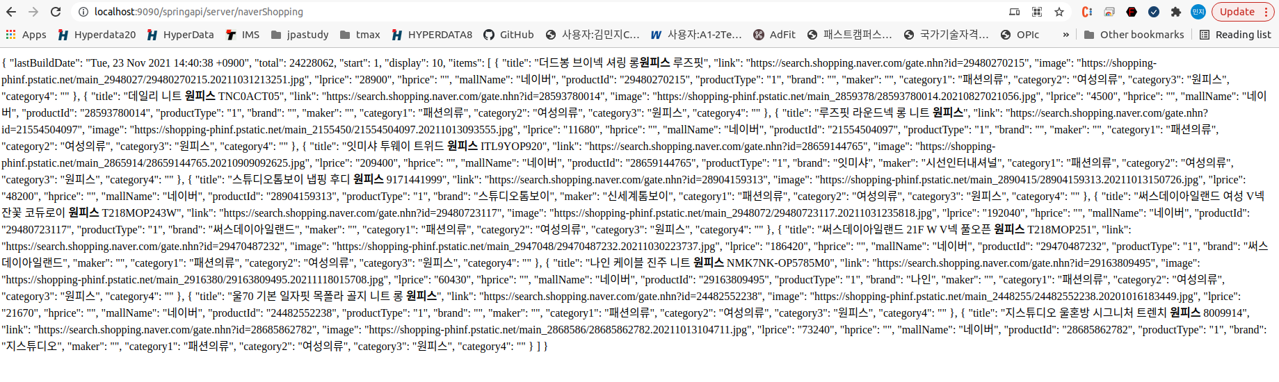 http://localhost:9090/springapi/server/naverShopping 아래에 접속해보면