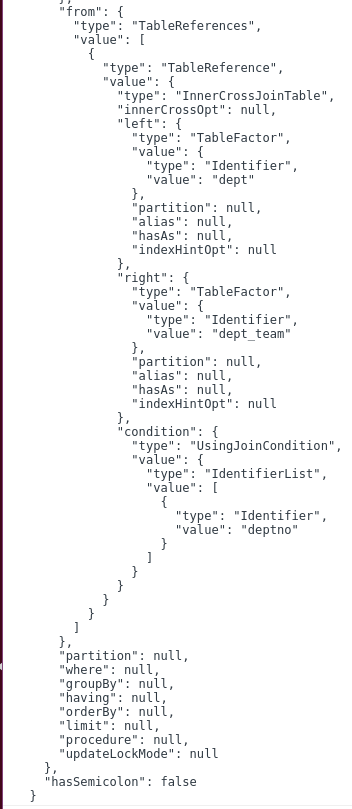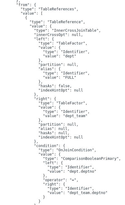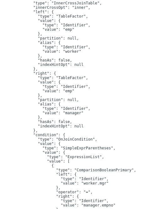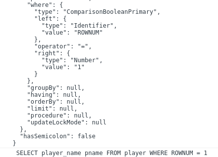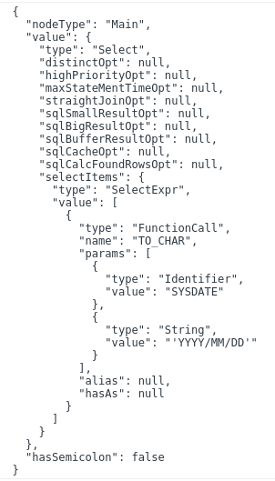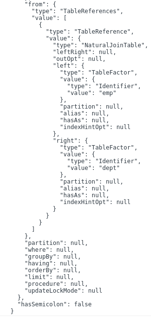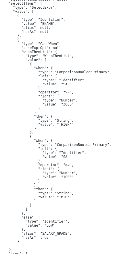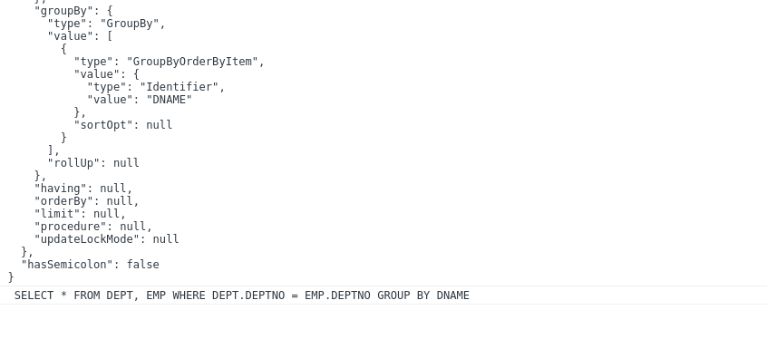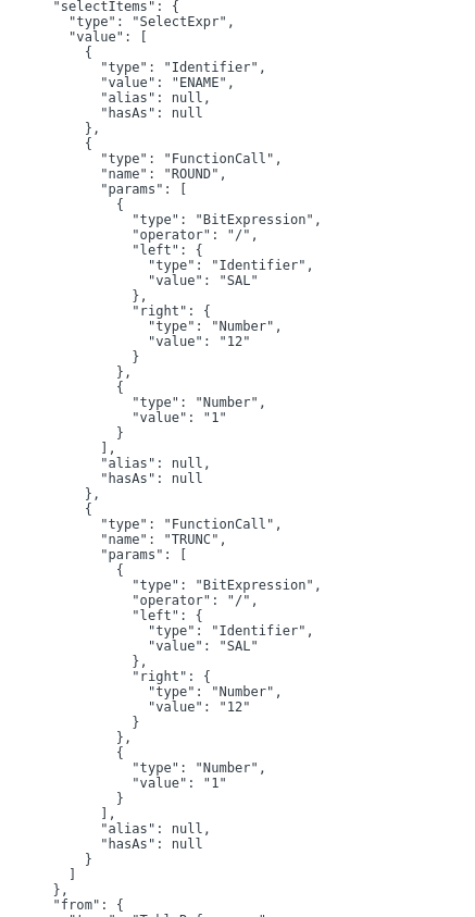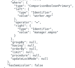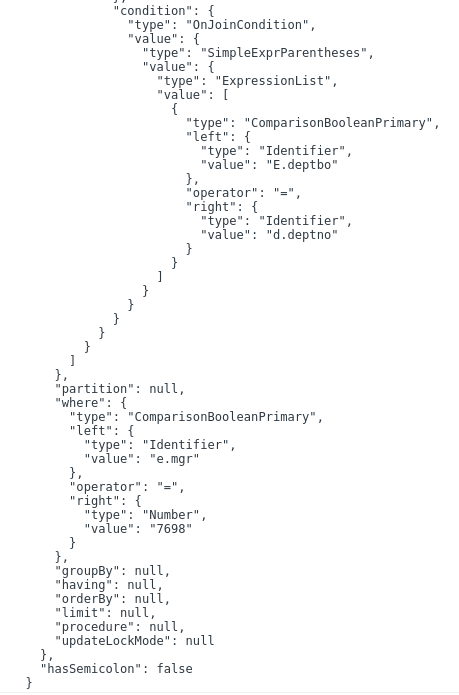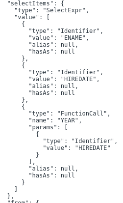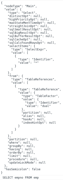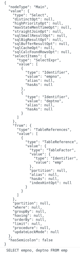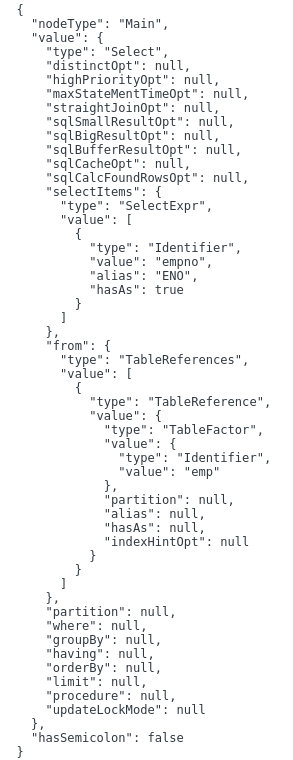 const ast = parser.parse("SELECT empno as ENO FROM emp");