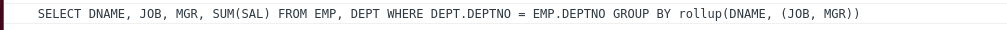 GROUP BY GROUPING SETS((DNAME, JOB, MGR), (DNAME, JOB), (JOB, MGR))