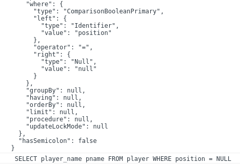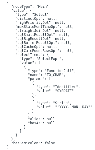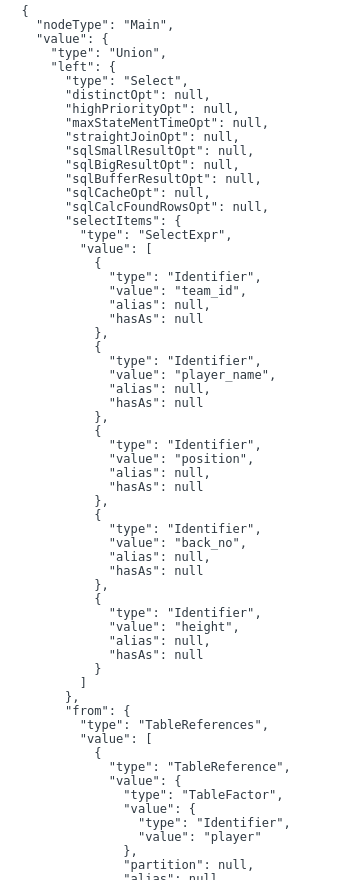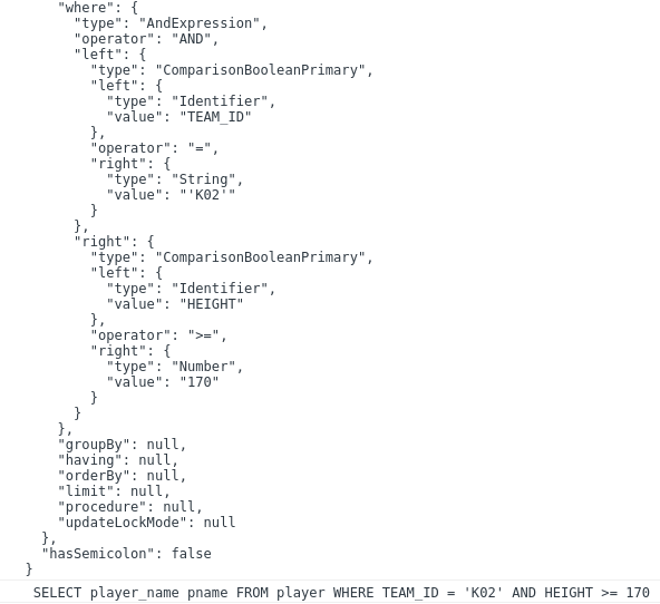 [javaScript] 오픈소스 js-sql-parser 예제 본문