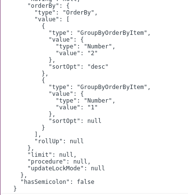 우선 ast.value.groupBy.value[0].value.name = "rollup"; 이렇게 넣어주면 rollup도 되기는 함.