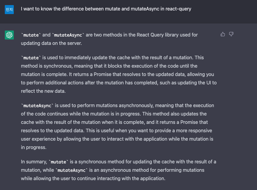 그렇다면 react-query의 Mutate와 mutateAsync의 차이가 무엇일까?