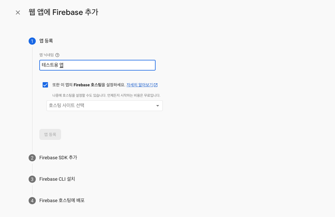 다음 버튼을 누르면 firebase를 설치해라, firebaseConfig 등이 보일 것이다. 모두 다음 다음 완료 버튼을 클릭한다.