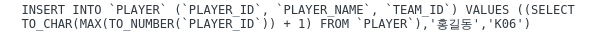 3.) 서브쿼리 INSERT 문의 VALUES 절