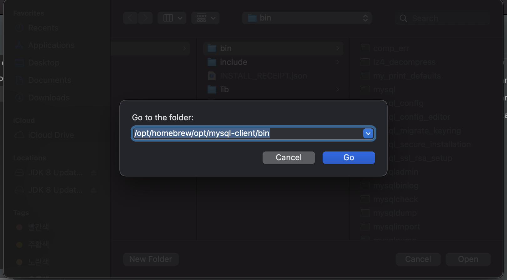 mysql-client를 설치했다면 opt내 path를 찾아와야하는데 도저히 안 보인다.