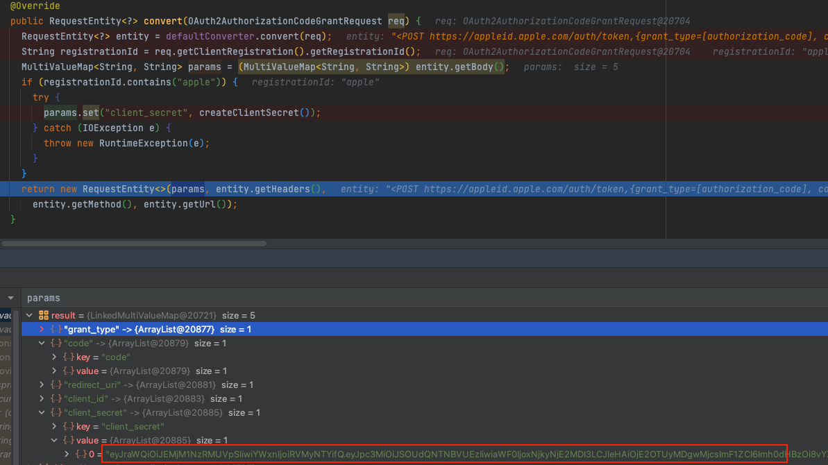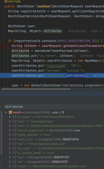 허나 우리의 애플 같은 경우에는 방식이 다르다. (id_token 값을 decode 해서 읽어온다)