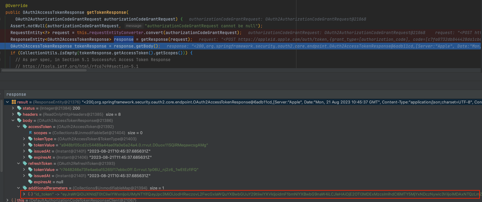 String idToken = userRequest.getAdditionalParameters().get("id_token").toString();