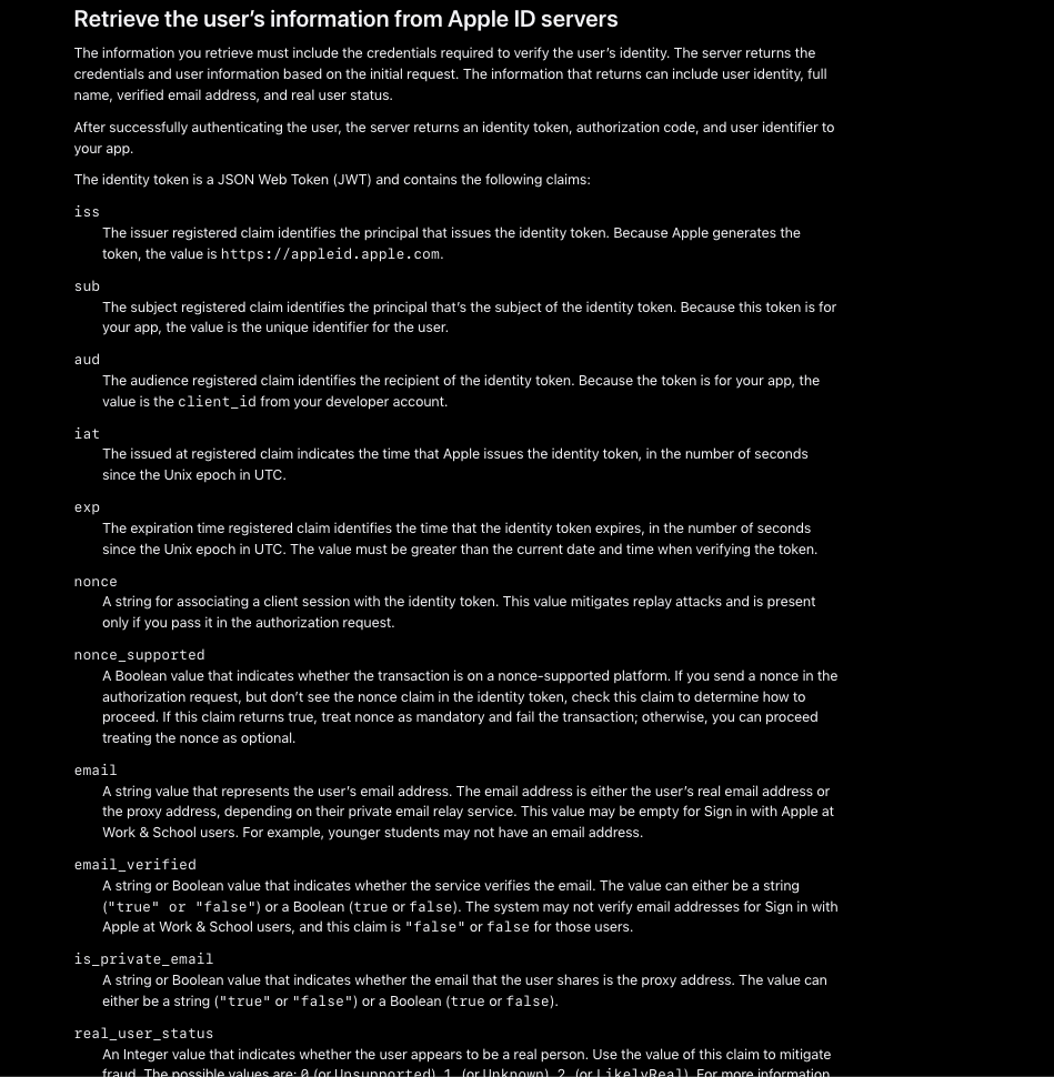앱스토어 배포시에 애플 로그인이 필요하다는 말에 개발을 하게 됐었는데 구현이 다른 소셜 로그인에 비해 꽤나 복잡했었습니다. 언젠가 또 개발할 일이 있지 않을까라는 생각에 기록을 남겨봅