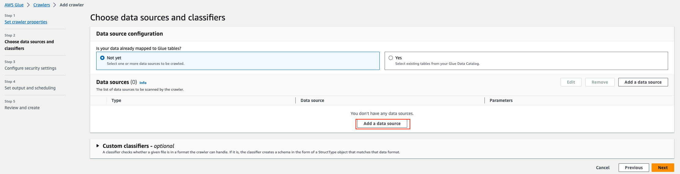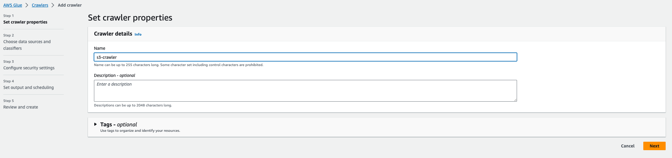 AWS Glue > Crawlers 사용