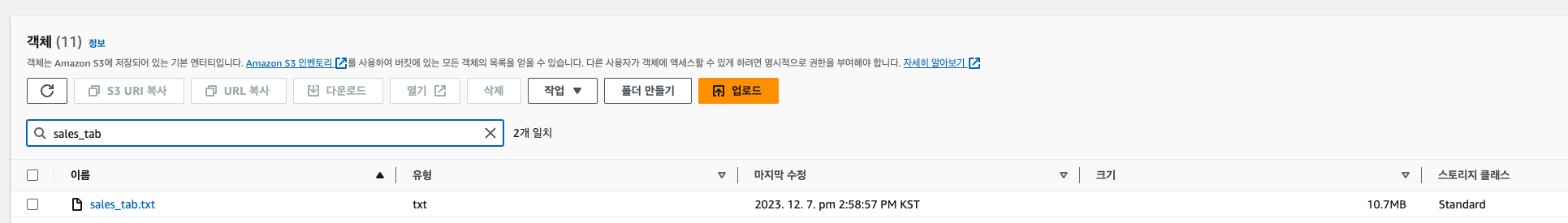 생성한 버킷에 txt 파일 업로드