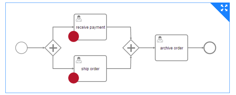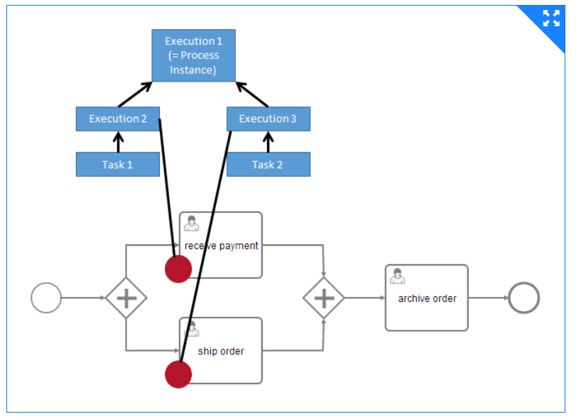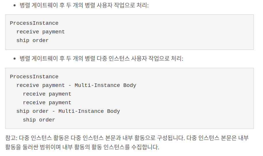 내부족으로 프로세스 엔진은 프로세스 인스턴스 내에서 동시 실행 경로에 대해 하나씩 두개의 동시 실행을 생성한다.