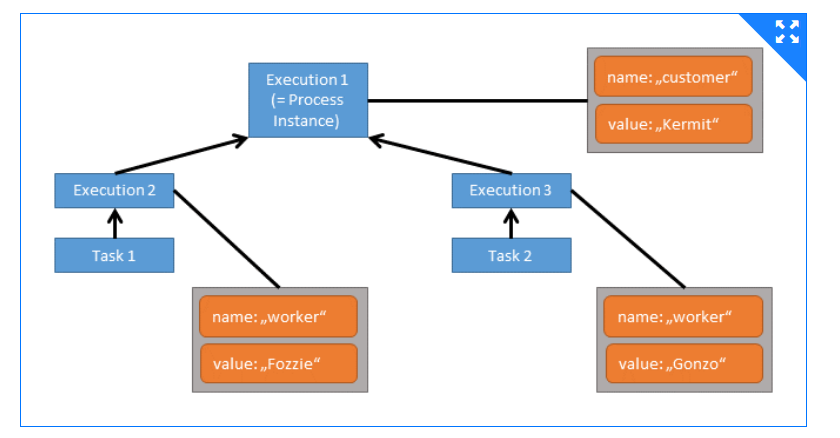 프로세스 인스턴스 자체가 실행이며. 실행은 변수 범위, 즉 동적 데이터가 연결된다.